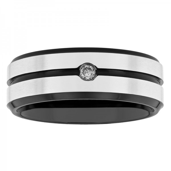 Featuring a durable double feature of stainless steel and diamond elements, this men's wedding band is ready to tackle anything with you.