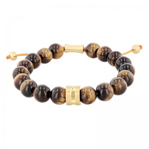 Stainless Steel Tiger Eye Bead Bolo Bracelet