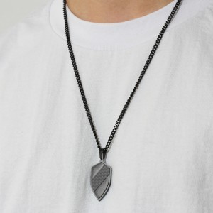 Black Finish Men's Shield Necklace w/ Carbon Fiber...