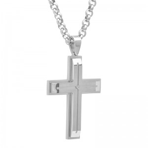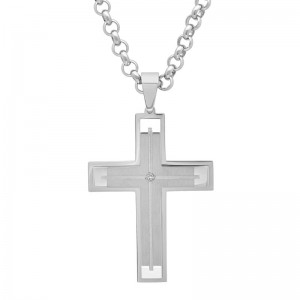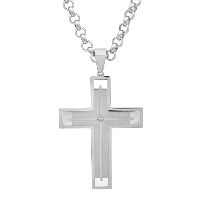 1/4 CTW Stainless Steel and Diamond Men's St. Chri...