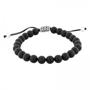 Stainless Steel Matte Onyx Bead Bolo Bracelet