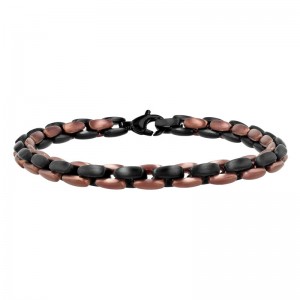 Men's Stainless Steel Black and Brown Oval Chain L...